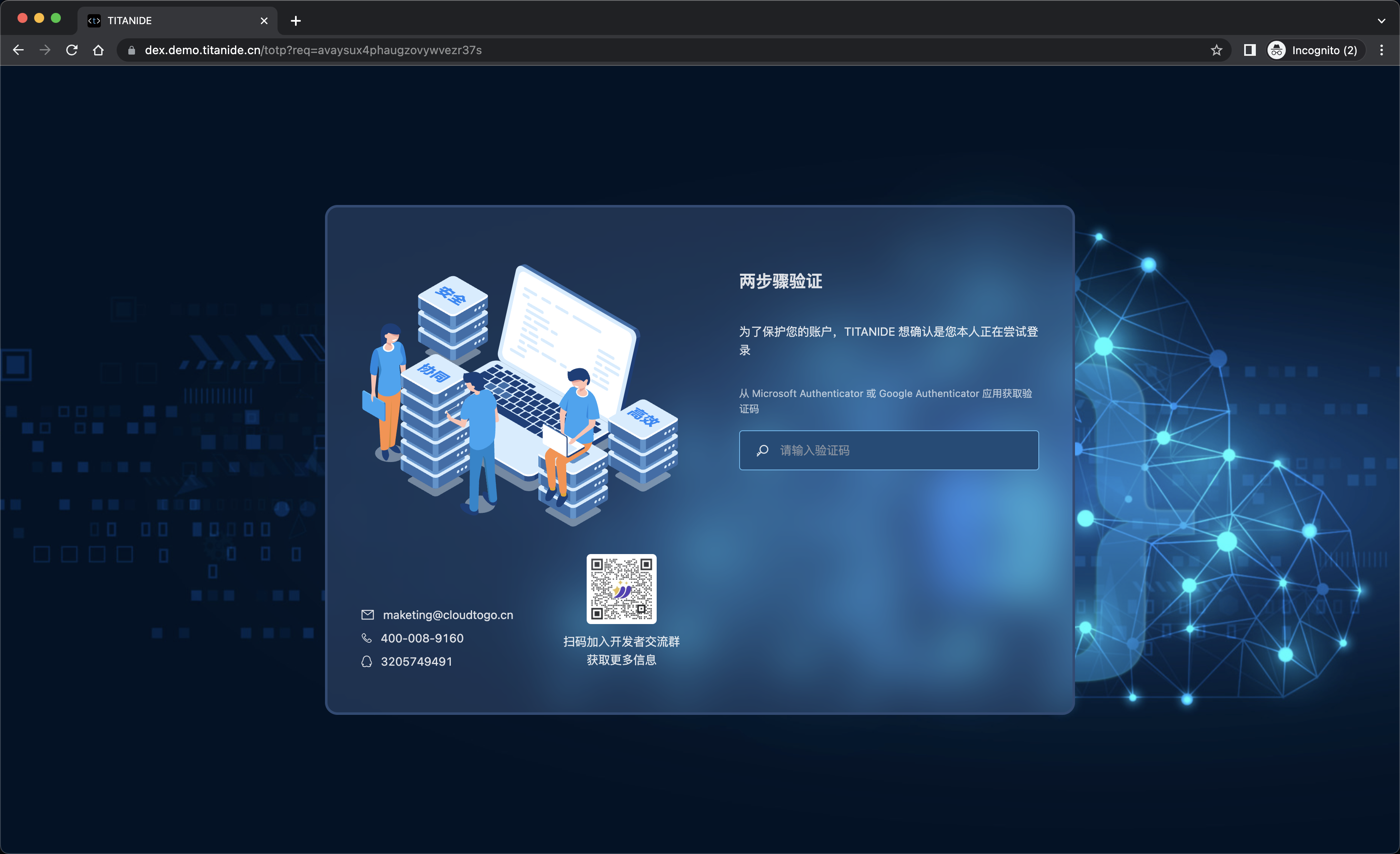 我们先通过 GitLab 账号和两步验证登录到 [TitanIDE]