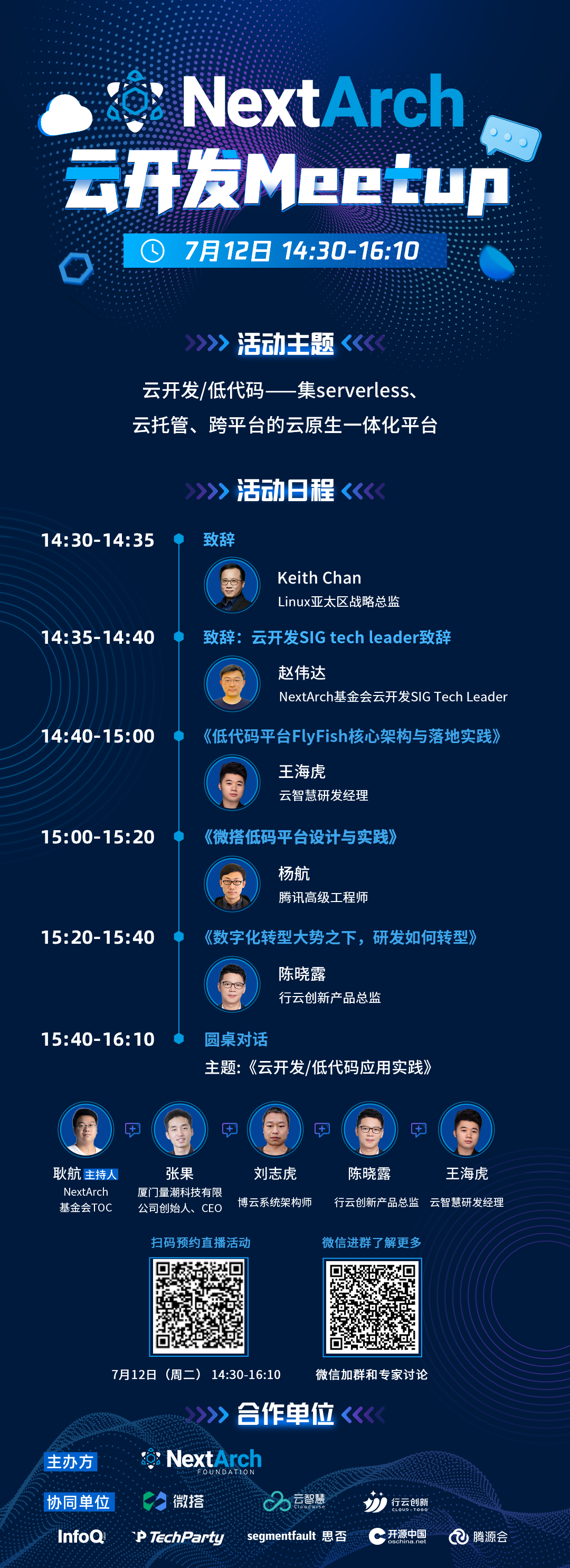7月12日14:30-16:10,《NextArch基金会云开发meetup》 即将开启,活动邀请到:
